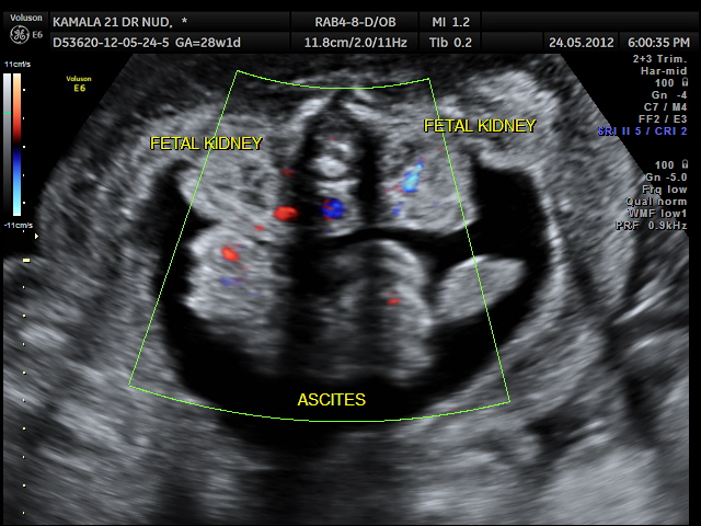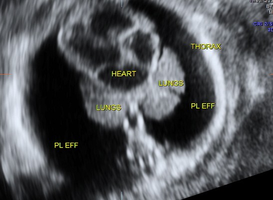 THIS FETUS SHOWED SEVERE SUB CUTANEOUS EDEMA ,BILATERAL PLEURAL EFFUSION AND ASCITES .