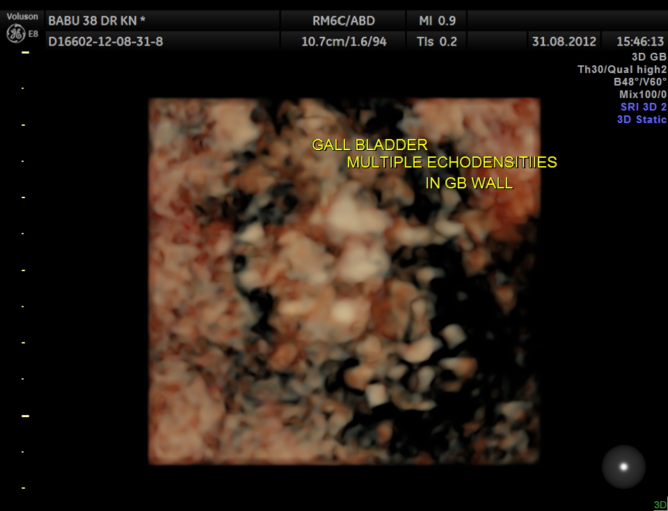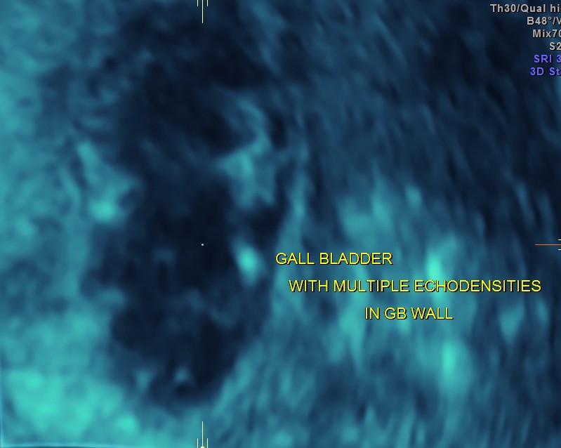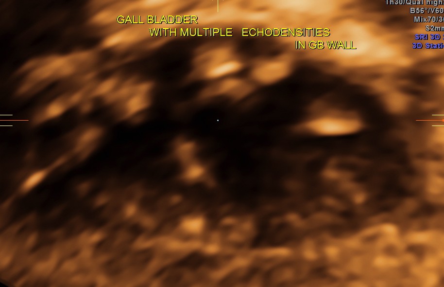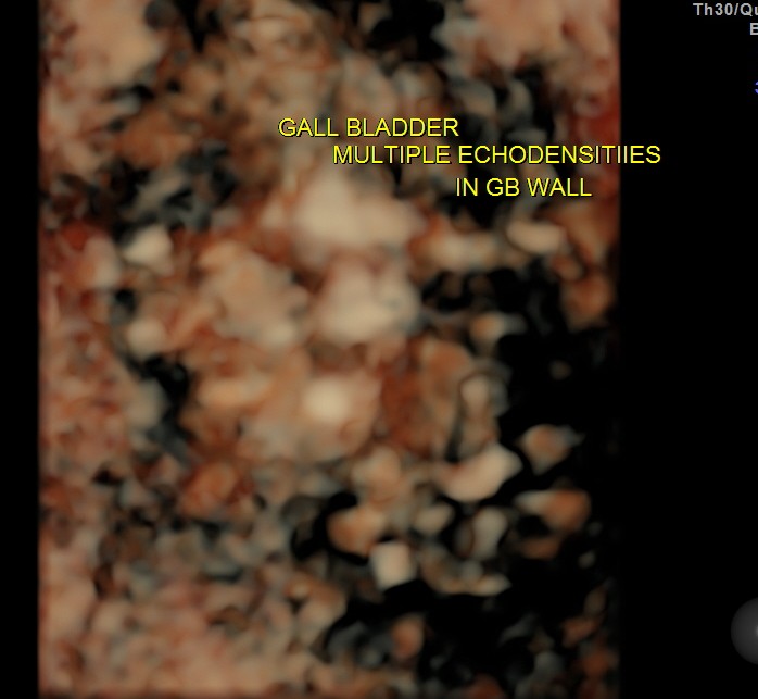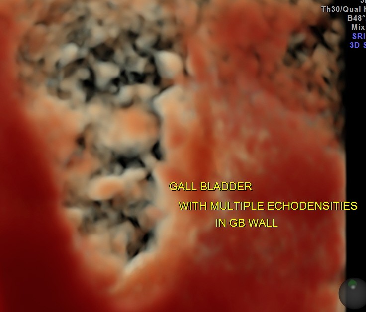 high definition live reconstruction shows the echodensities in the posterior wall of the gallbladder