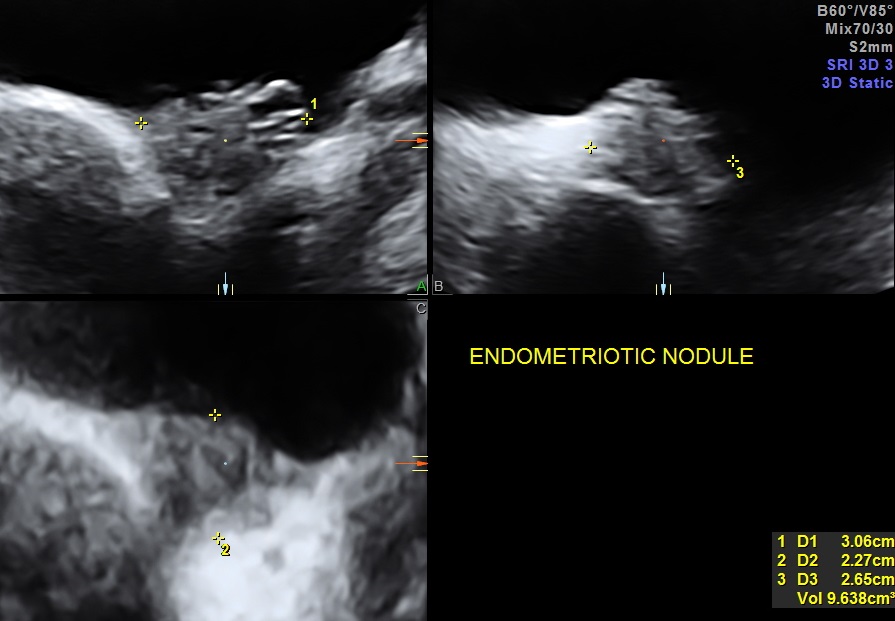 The 3 D and 4D Live pictures of the endometriotic nodules are given above. The uro gynaecologist reviewed her and advised her  to continue the conservative management.