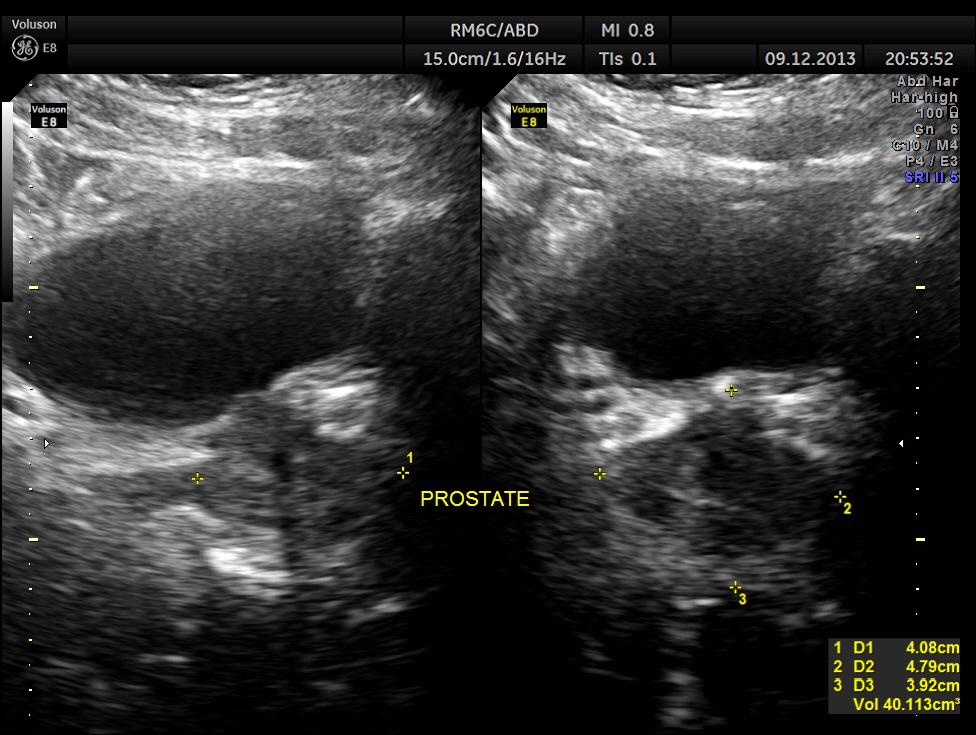 Urinary bladder and prostate are shown below. Mild prostatomegaly seen.