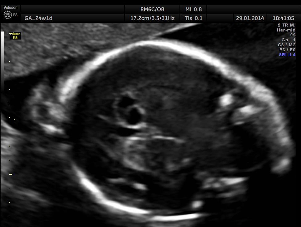 This was a 32-year-old lady – primi gravida . She was referred for an anomaly scan around 24 weeks gestation.Her earlier scan done in the first trimester elsewhere was reported as normal.