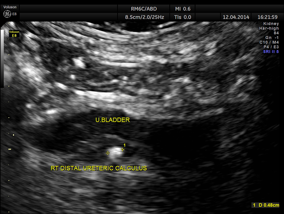 Usually we pick up all ureteric calculi and distal ureteric pathologies with a full bladder . Usually distal ureteric calculus will cause some amount of obstructive features in the ureter and the kidney . That was also absent in this patient .