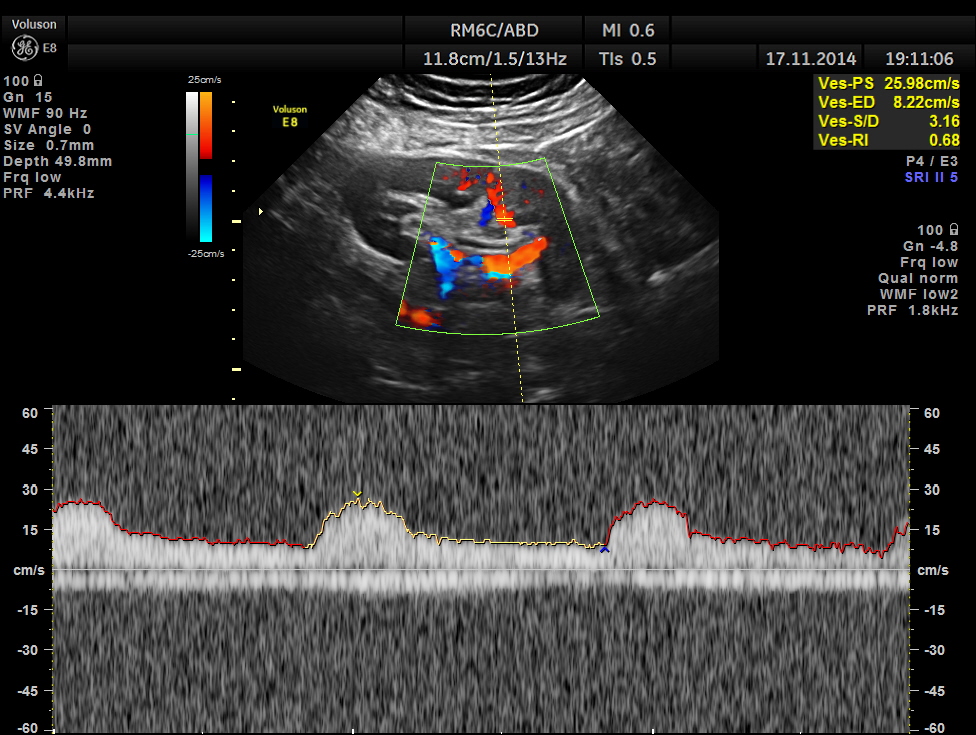 The following pictures show the transplanted kidney in the Right Iliac Fossa, with normal architecture, good Power Doppler flow and normal Spectral Doppler values.