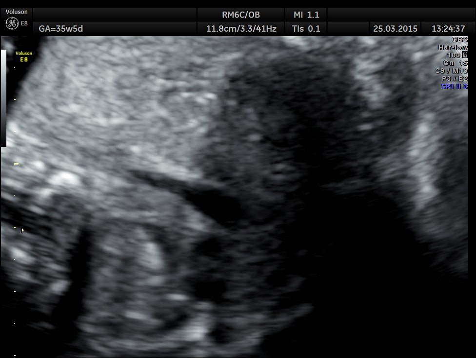 I believe that TOF is the most common cause of cyanosis in the newborn. Also am curious as to whether you were able to show the aorta connected to the small RV and whether there is conal tissue. What was final diagnosis at time of birth. Interesting case. Thanks for sharing.